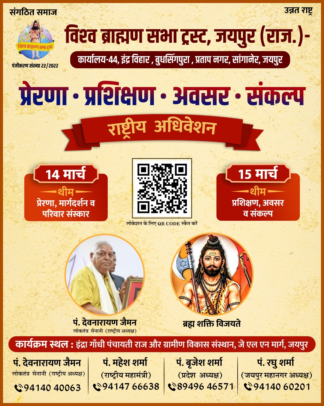 संगठित एवं आत्मनिर्भर ब्राह्मण समाज का निर्माण।