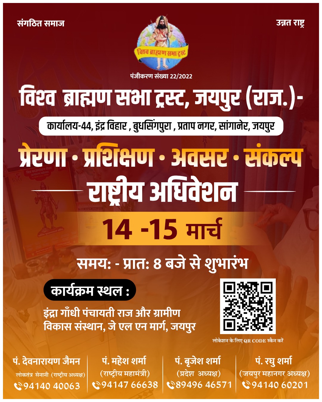 विश्व ब्राह्मण सभा ट्रस्ट एक प्रतिष्ठित, उद्देश्यनिष्ठ एवं